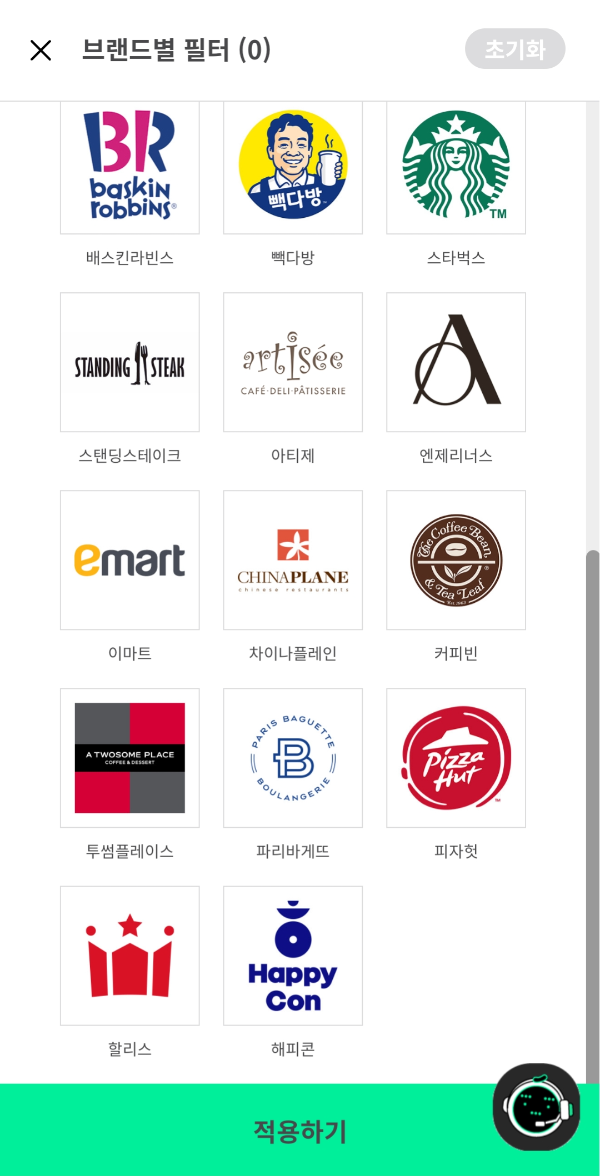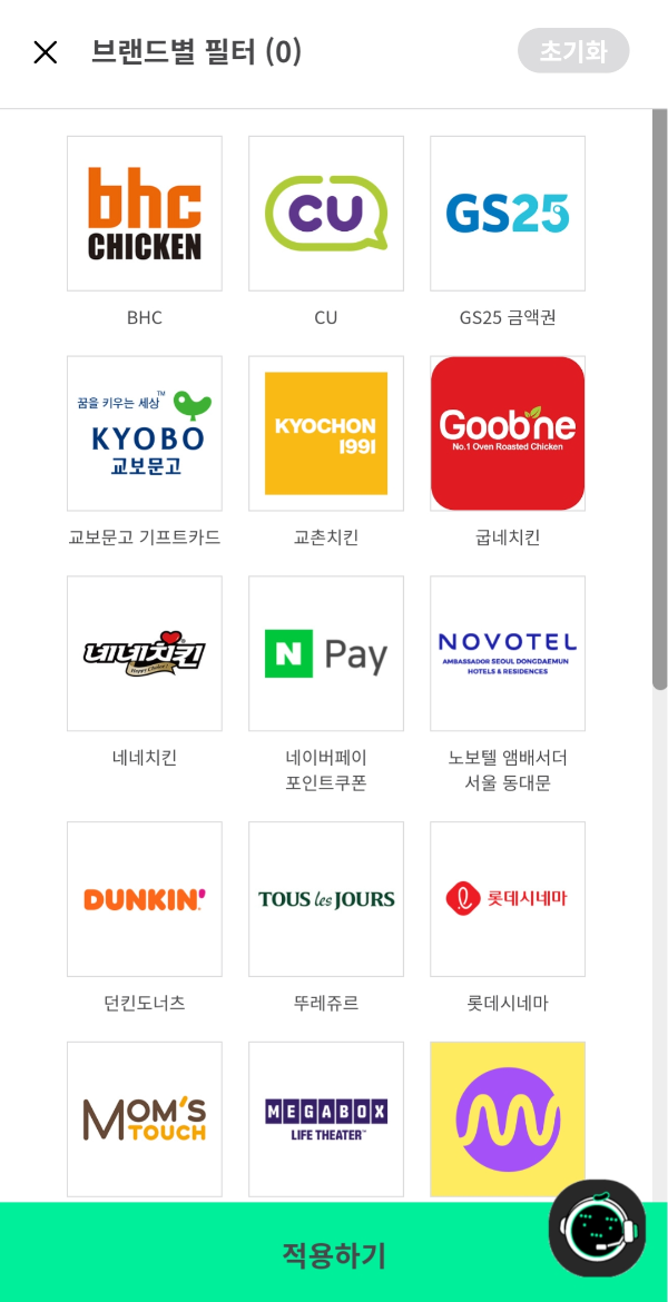 음식관련 브랜드가 가장많고 네이버페이나 교보문고도 보입니다.
