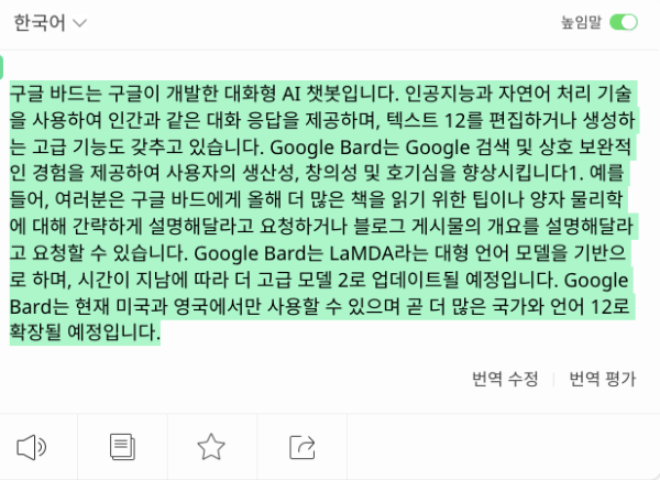 파파고 번역기에 복사한 답변을 붙여넣기 하면 오른쪽에 영어로 번역이 되는 것을 확인하실 수 있습니다.