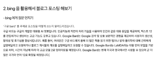 - 주제 선정을 하고 bing 에게 주제에 맞는 질문을 던지면 상세한 내용을 검색해준다.