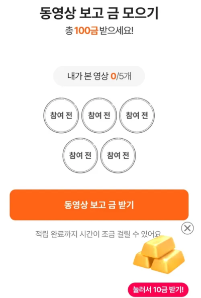- 하루에 5번 광고 영상을 보고 금을 얻을 수 있습니다.
